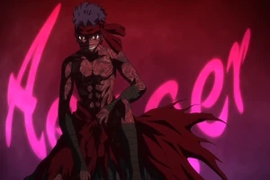 Avenger was regular human worshipped as a Heroic Spirit in life and considered to be Angra Mainyu, but he became a "mere human" again after his death. Despite such religious faith being placed upon him, he did not gain any unique abilities as a Heroic Spirit other than becoming free from the laws of order due to having his name stricken from Avesta, but that quality is not enough to be able to truly label him a Heroic Spirit. He is considered to have been garbage during the Third Holy Grail War, completely powerless and without any Noble Phantasms. He is only able to become the Heroic Spirit others wished for upon entering the Holy Grail, fulfilling the wishes piled upon him and truly becoming All the World's Evils. Within the recreation of the Fifth Holy Grail War, he has changed somewhat from the Servant serving the Einzbern Master, displaying a Noble Phantasm and having some use to Bazett despite his weakness.[7] He declares himself to be the weakest of all legends in the world, boasting that he is "number one" in that regard, says that his Servant skill is "nothing", and believes even Bazett outstrips him in fighting ability.[7]