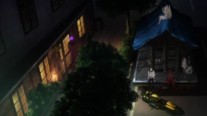 In Irisviel's story, Archer and Avenger were seen in the Emiya residence. Irisviel (which is an Irisviel of a parallel world that was brought by accident by Avenger and Neco-Arc for letting the Zelretch chest that they took of the Tohsaka residence at the beginning of Irisviel's story and made it quite close to the Fuyuki Bridge in Shinto.) identifies Avenger as someone she once known. With Archer, Avenger and Shirou arguing, Magical Caren told Irisviel that they are all Kiritsugu's sons. Irisviel shocked with this revelations, she decided to take action as a mother. She lectures them about brothers should take care of each other. She greets Avenger and calls him Angra Mainyu. Avenger replies back "It's been a while", although they haven't met in his current state. Irisviel was surprised to see Angra Mainyu as her son in this world and she is glad to see Avenger finally happy. Avenger claims that his body is of a hopeless ordinary man, but he is grateful to him.