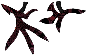 He wields Tawrich: The Left Fang Grinder (左歯噛咬, Hidari Ha Kajikō?) and Zarich: The Right Fang Grinder (右歯噛咬, Migi Ha Kajikō?), a pair of reverse grip weapons fashioned in the shape of a mix between a beast's fangs and claws. They were likely worshipped as real demon's fangs and used in rituals during the era they were made. Brutish weapons varying greatly in size and shape, they are similar in form to throwing daggers originally crafted by the Azande or Ubangi tribes of Africa. As often with short swords, they are meant to be used as sword-breakers to stop an opponent's blade rather than rend flesh; one is able to catch a blade, while the other is used to attack. As they are not Noble Phantasms, it is possible to break them in the case of Saber easily doing so using Mana Burst to smash both with one swing. When acting as Shirou and properly meeting Caren for the first time, he projects a large number of them due to his compatibility with them, using them with great efficiency and shooting them as spinning projectiles.[7][8][9][10]